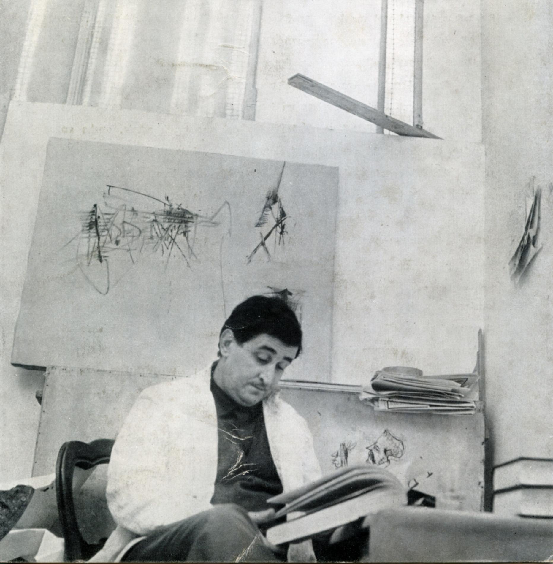 Si trasferisce da Genova a Milano ed uno dei maggiori studiosi dell’Informale italiano ed europeo, Enrico Crispolti, allora giovane critico, inizia a frequentare il suo studio milanese situato in una soffitta in via Tamburini.