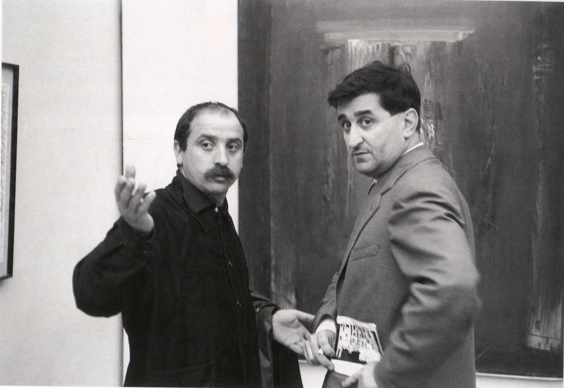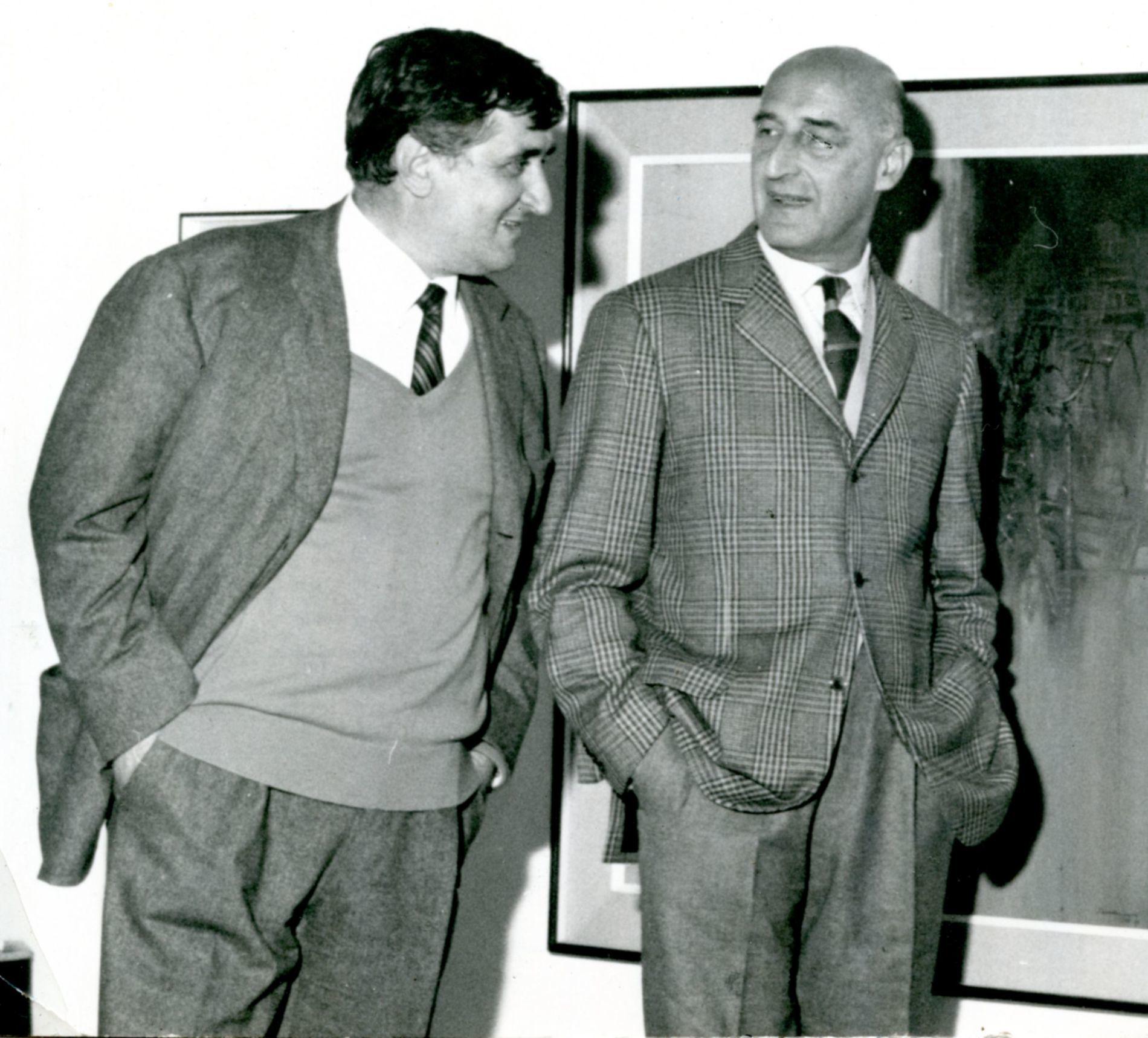 I galleristi Guido Le Noci, Arturo Schwarz e Giuseppe Gastaldelli si interessano ai suoi quadri.