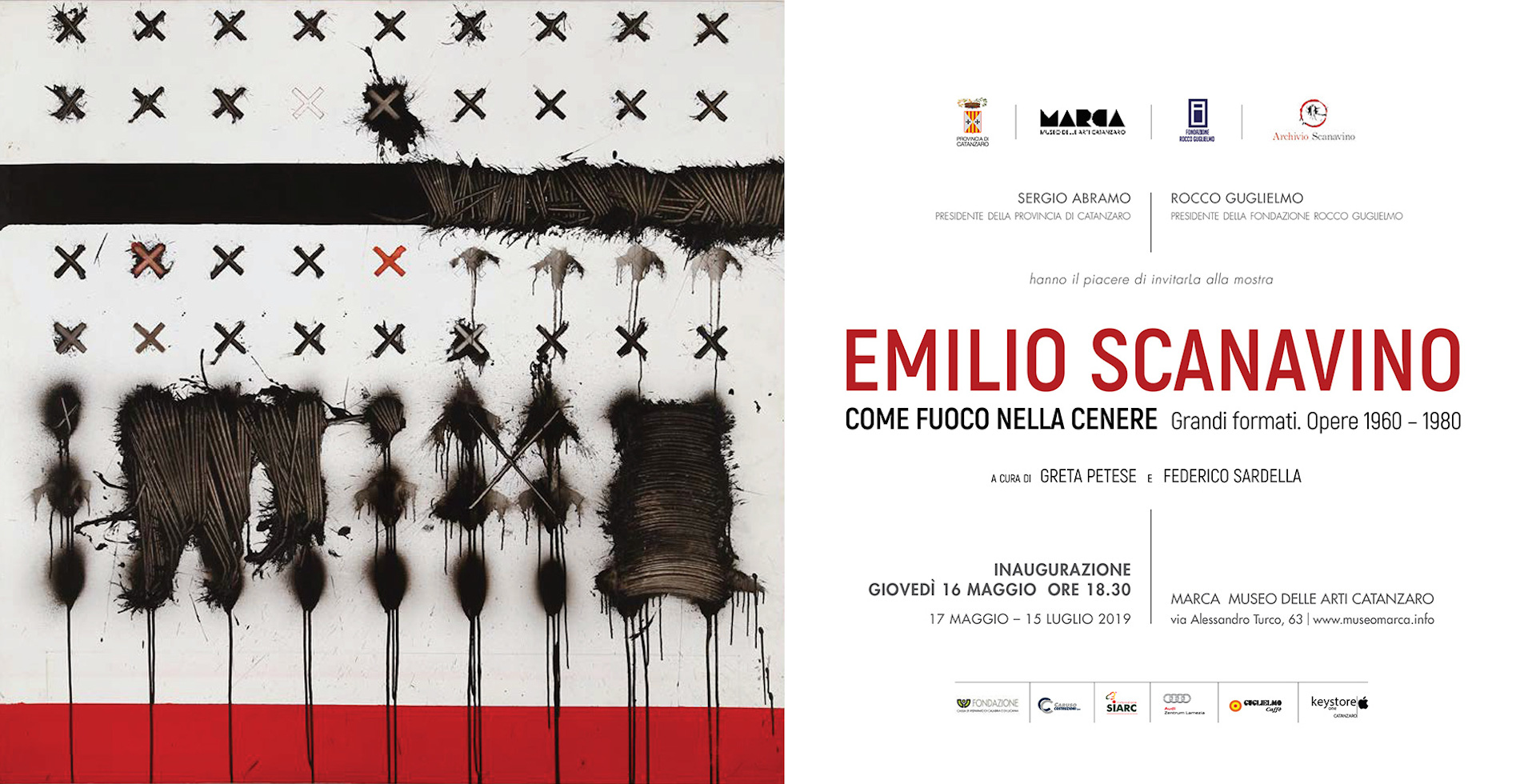 Apre il 16 maggio 2019 al Museo MARCA di Catanzaro la mostra “Emilio Scanavino. Come fuoco nella cenere” che raccoglie, fino al 15 luglio, un significativo nucleo di opere, tutte di grandissimo formato.