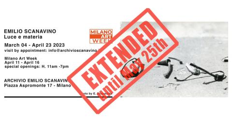 Emilio Scanavino. Luce e Materia. La mostra presenta una selezione di scatti fotografici di Emilio Scanavino (1922-1986) realizzati negli anni Sessanta: immagini caratterizzate da inquadrature ravvicinate, che ritraggono particolari, tracce, elementi isolati su sfondi sconfinati e indefiniti, mostrando un’alfabetizzazione dei soggetti che vengono replicati più volte, con riprese diverse.